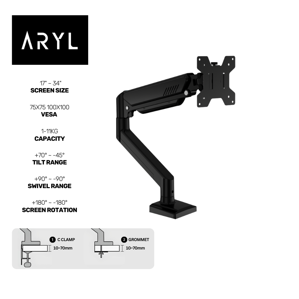 the Aryl™ Gas Spring Single Monitor Arm Pro
