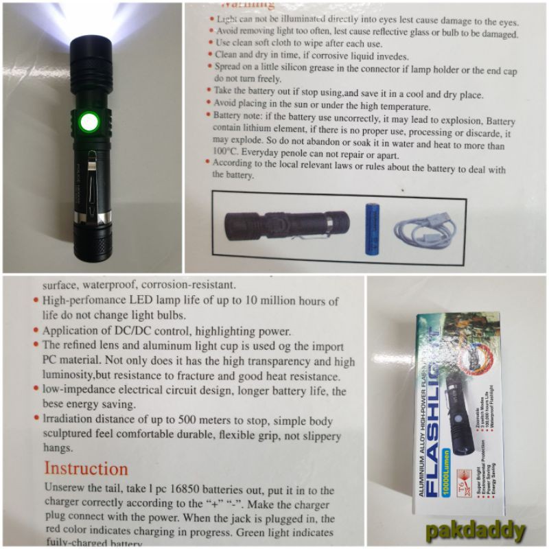 torchlight Police 12000W USA SH 518 Super Brightness USB Rechargeable Charger