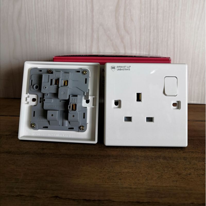 ums 13a switch socket (sirim) 13a socket plug electric socket with pvc surface nut box 3x3 2913 3913