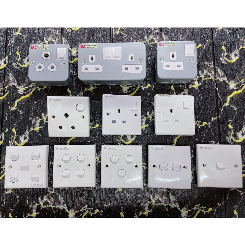 ums switch socket FULL SIRIM 1 gang 2 gang 3 gang 4gang 5gang home electric plug socket switches suis elektrik rumah
