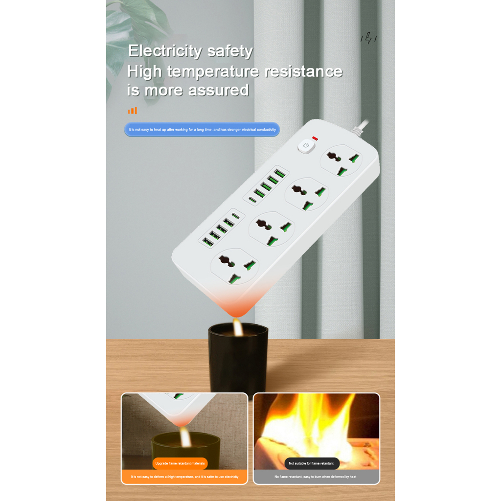 universal power socket expansion with surge protector 3pin 3000W British expansion plug adapter socket fast charging USB