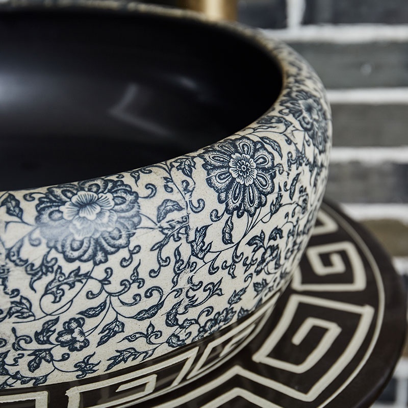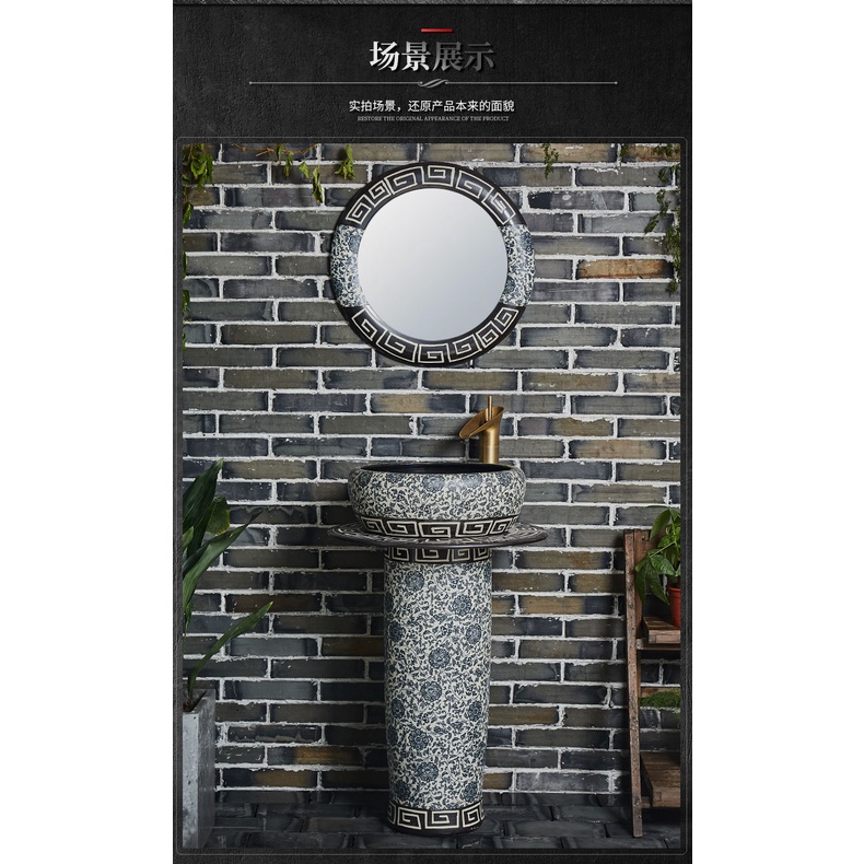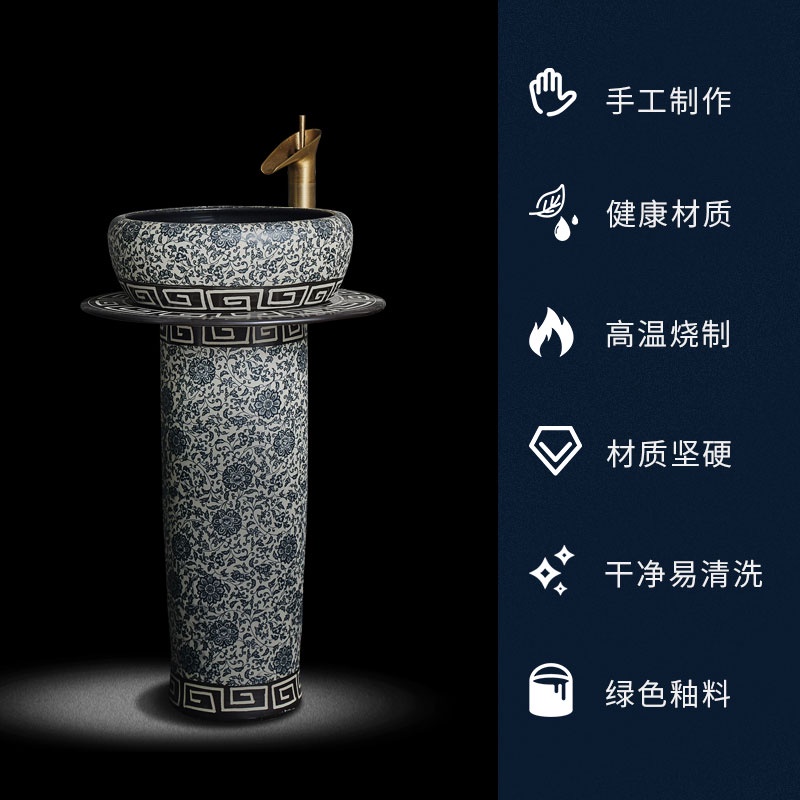 wlEdge Painting Ceramic Pedestal Washbasin Outdoor Wash Basin Inter-Platform Basin Integrated Courtyard Floor-Standing S
