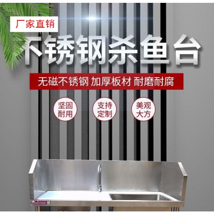 wlSupermarket Stainless Steel Fish-Killing Table Pool Fruit Cutting Table Chicken Duck Slaughter Table Planer Fish Table