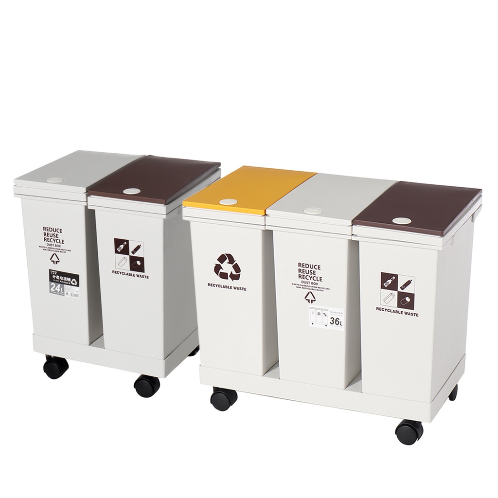 xKitchen Sorting Waste Bin Home Corner Garbage Bucket Floor Standing Space Saving Wet And Dry Sorted Trash Can With Wheels 24L / 36L