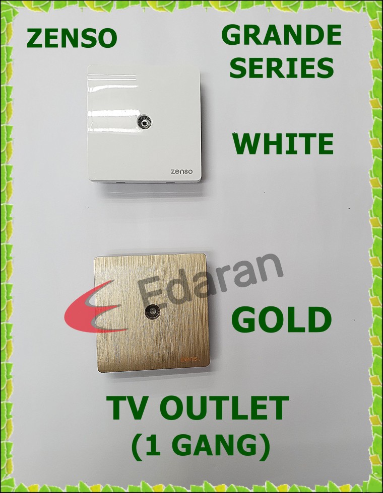ZENSO G2011 GRANDE 1 GANG TV OUTLET - (GOLD & WHITE)