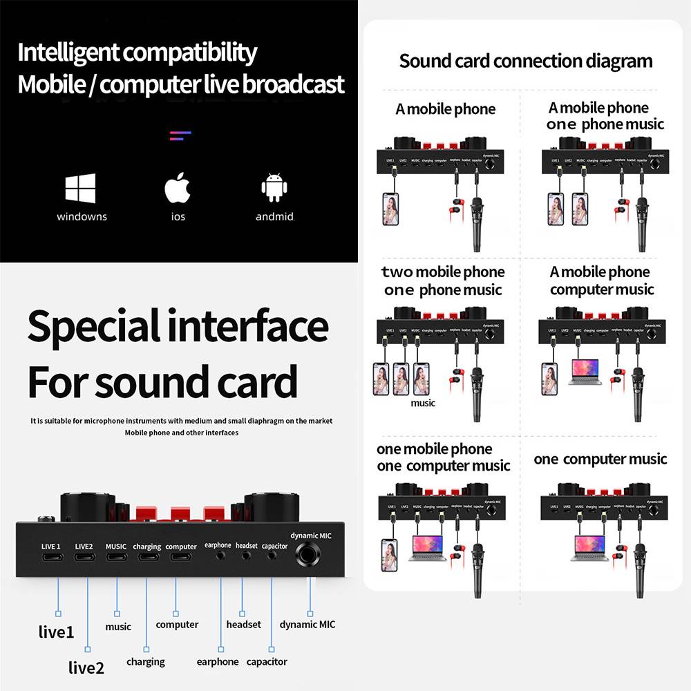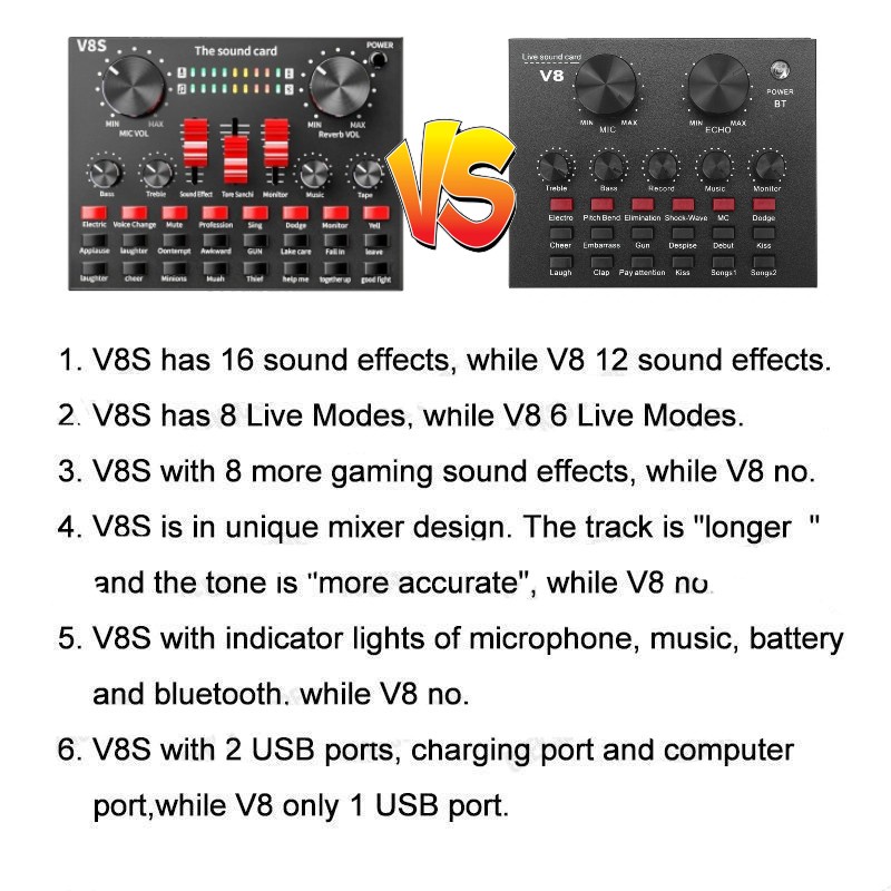 ~SHIP FROM KL~ V8S Bluetooth Sound Card Live Broadcast set V8 Sound Card Audio Streaming Singing Live Sound card